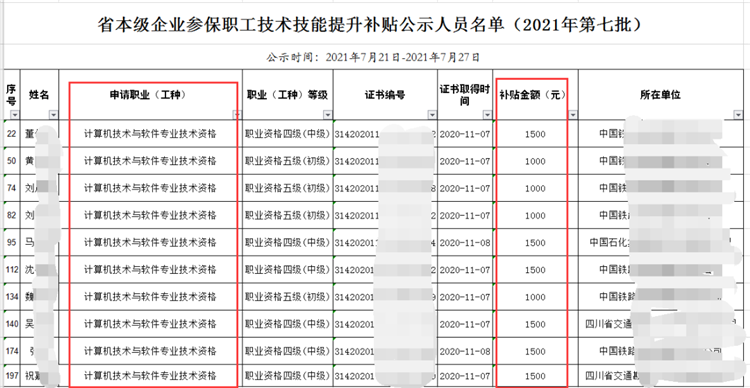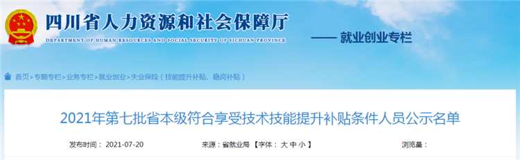 原文链接:2021年第七批省本级符合享受技术技能提升补贴条件人员公示名单-失业保险(技能提升补贴、稳岗补贴)-四川省人力资源和社会保障厅