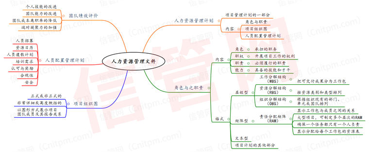 最后是四个人力资源管理文件。团队绩效评价,人员配置管理计划,项目组织图,人力资源管理计划都是需要记忆的。