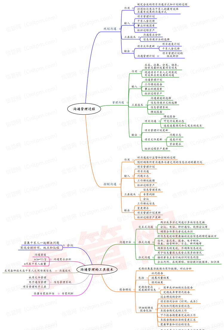 沟通的技术与方法是沟通管理这个章节中的重中之重。里面的内容有:沟通渠道(n*n-1)/2其中N是干系人的数量,沟通方法(推式,拉式,交互式),高效会议,绩效报告等都是其主要的内容表现;