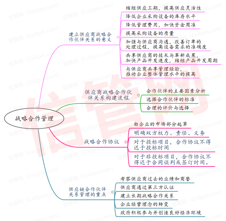 战略合作的管理本质是供应链管理。供应链成员企业间应建立战略合作伙伴关系,即供应链中相互独立的上下游企业间基于信任和共同目标,共享资源、共担风险、共同获利的非正式长期协议关系。