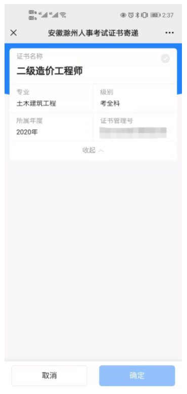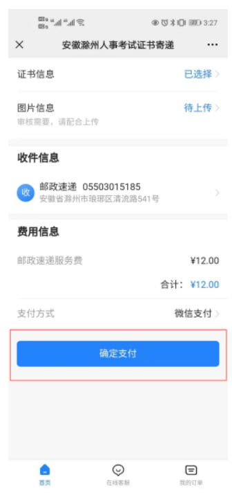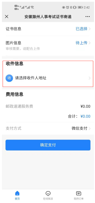 邮寄服务办理流程:扫描中国邮政邮寄业务二维码—填写考生信息—核对考生证书信息—上传考生本人手持身份证照片—填写收件地址—系统自动计费—线上支付—邮寄送达。
