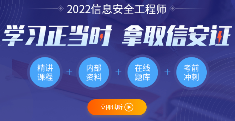 JRS直播2022年信息安全工程师培训班开启全新课程,考生随报随学,资深讲师教学、全科视频精讲+专题课程多种教学模式强化知识体系,攻克重点难点。课程搭配免费课后习题+赠送题库会员满足刷题所需,强化所学,更有全新内部辅导资料及学习用品免费赠送,助你精细化高效备考、轻松拿证!