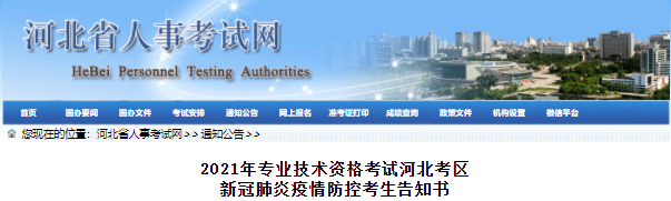 2021年专业技术资格考试河北考区新冠肺炎疫情防控考生告知书