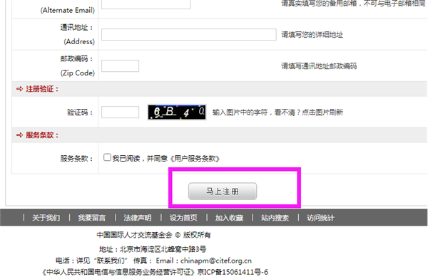 3、点击“新用户注册”,进入注册页面,按要求填写信息。信息填写完成后,点击“马上注册”。详细操作如下图所示: