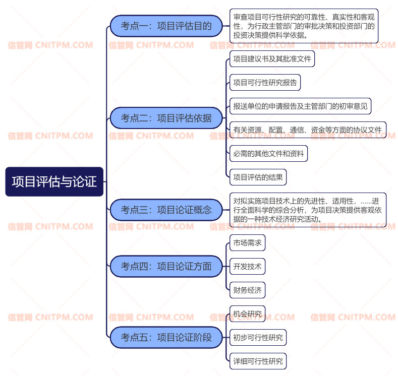 项目评估与论证是信息系统项目管理师十大管理中项目立项管理的考点内容,属于信息系统项目管理师教程(第3版)中第3章的内容【点这里购买官方正版教程】。项目评估与论证在2022年下半年、2021年上半年、2020年下半年都有考到过,考试内容一般围绕“项目评估目的”、“项目评估依据”、“项目论证概念”、“项目论证方面”以及“项目论证阶段”等方面。也属于项目立项管理中的高频考点,要求考生掌握。