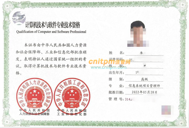 信息系统项目管理师是由人社局和工信部共同组织的国家级考试,证书上面有这两个机构的印章,工信部教育与考试中心负责全国考务管理工作。