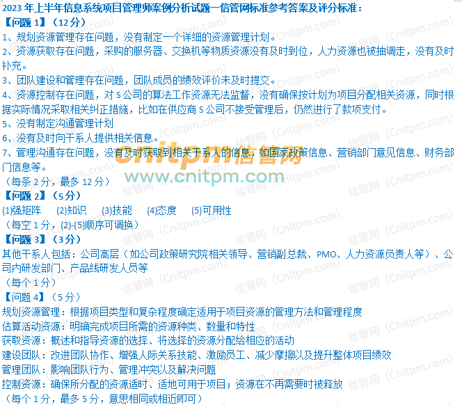 2023年上半年信息系统项目管理师案例分析真题答案及解析完整版