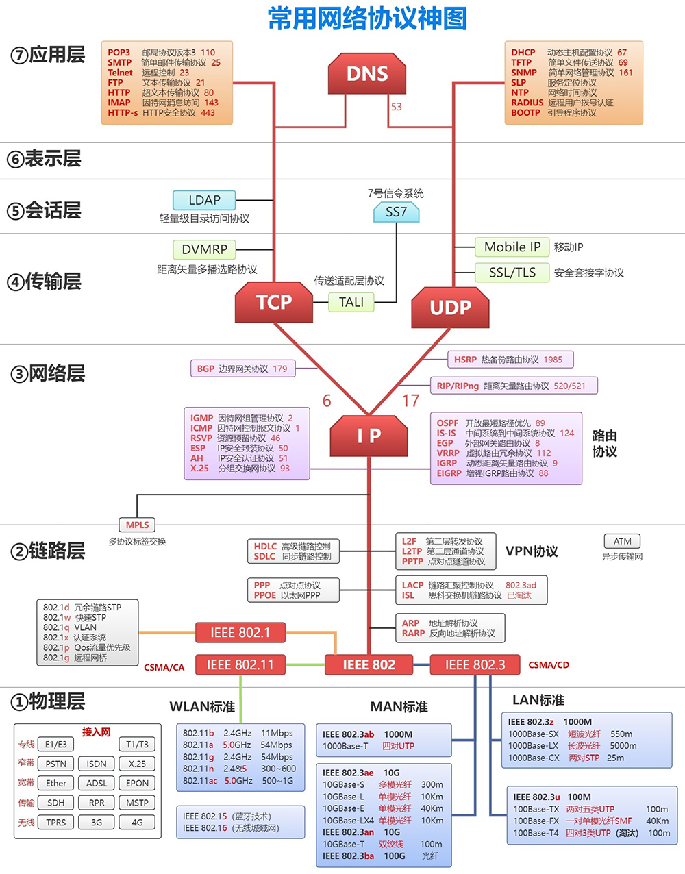 常用网络协议神图能够帮助大家更直观的理解OSI模型七层协议相关知识点。