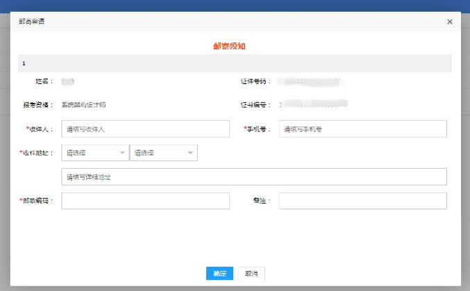 (3)根据提示填写真实有效的个人邮寄信息,收件人与持证人姓名必须一致。邮寄信息一旦提交,无法撤回、更正,请务必准确、详细填写。如因个人邮寄信息填写不全或者有误,导致证书邮寄有误或丢失等的后果自负。