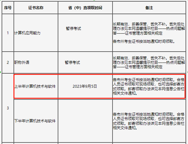2023年度监理工程师、环境影响评价工程师、上半年计算机技术与软件专业技术资格(水平)考试合格证书于2023年9月5日起面向全省考生发放。