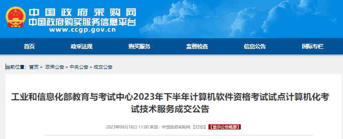 2023年9月18日,中国政府采购网发布了《工业和信息化部教育与考试中心2023年下半年计算机软件资格考试试点计算机化考试技术服务成交公告》,根据公告可知,2023年下半年信息系统项目管理师机考系统项目中标单位为:深圳市卓帆技术有限公司。