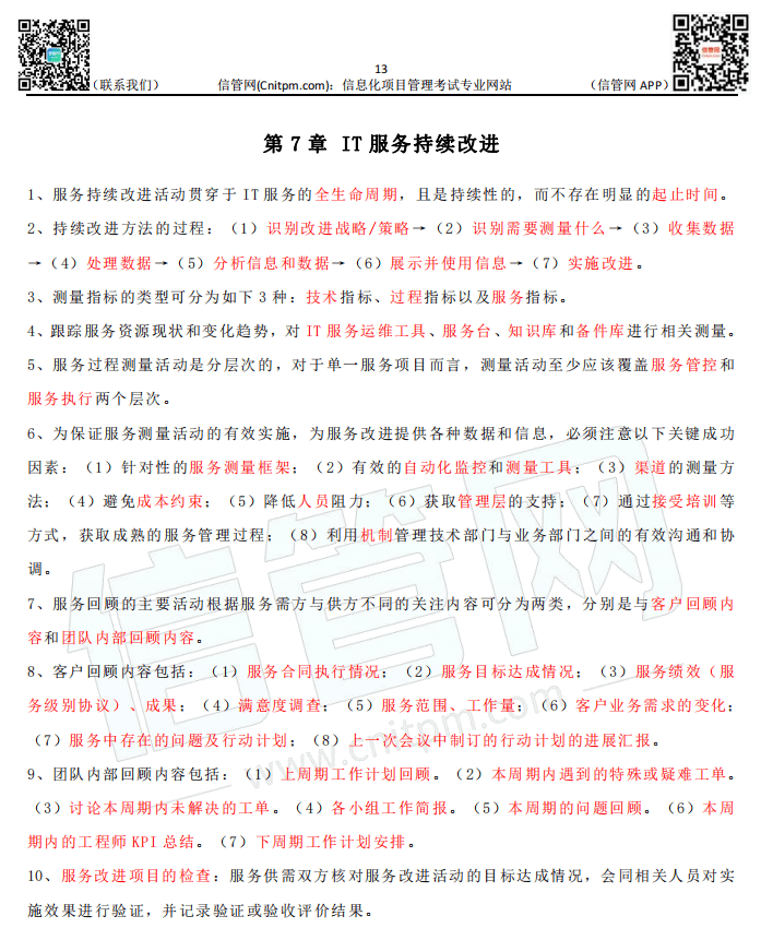 以下是由JRS直播整理的系统规划与管理师考点默写本(普通版)《第7章-IT服务持续改进》的参考答案,供广大考生进行查看: