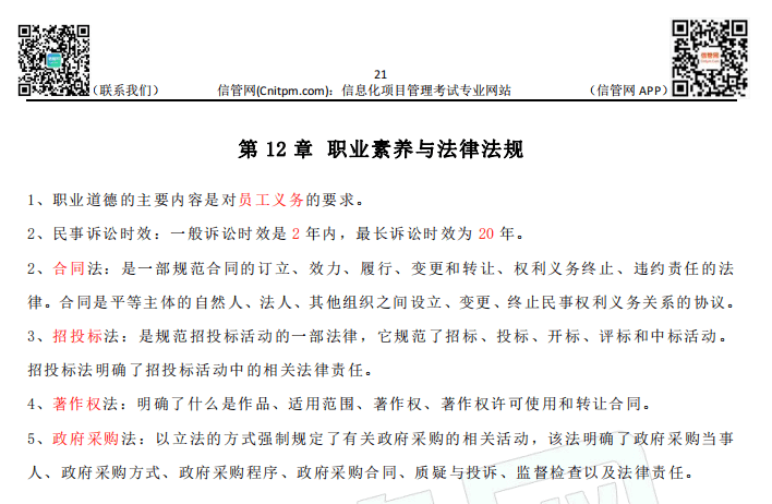 以下是由JRS直播整理的系统规划与管理师考点默写本(普通版)《第12章-职业素养与法律法规》的参考答案,供广大考生进行查看: