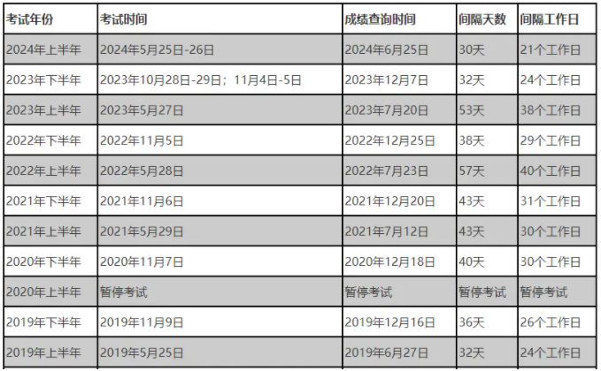近五年软考成绩公布时间