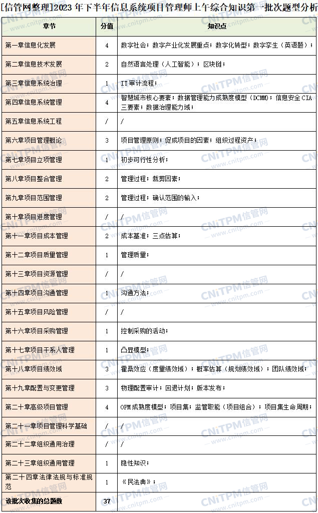 2023年下半年信息系统项目管理师第一批考试于10月28日顺利结束,JRS直播在考试结束后也更新了试题与答案,为帮助广大考生能了解本次考试考情及题型分布情况,JRS直播特意整理了 <2023年下半年信息系统项目管理师第一批综合知识题型分析> 供广大考生进行参考,希望对各位考生有所帮助。