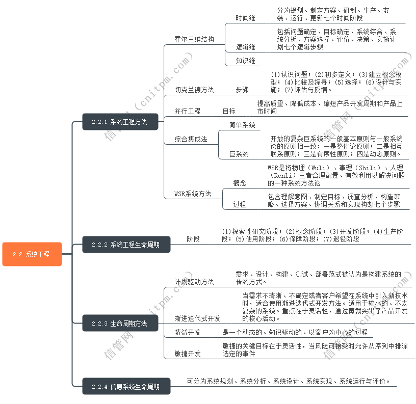 2025年信息系统监理师章节考点思维导图:2.2 系统工程