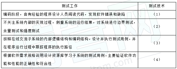 针对事件二,请根据不同的测试工作写出最适合的测试技术,并将(1)~(4)适合的测试技术名称填写在答题纸的对应栏内。