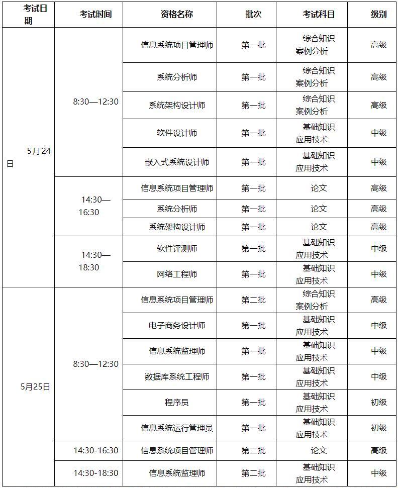 关于2025年上半年计算机技术与软件专业技术资格(水平)考试批次安排的通告