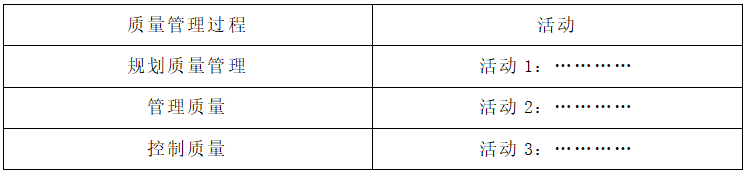 结合案例,请将该项目在质量管理各过程中执行的活动进行归类,完成下表。