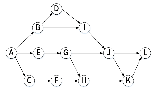 某软件项目的活动图如下图所示,其中顶点表示项目里程碑,连接顶点的边表示包含的活动,边上的数字表示活动的持续时间(天),则完成该项目的最少时间为( )天。活动BD和HK最早可以从第( )天开始(活动AB、AE和AC最早从第1天开始)。