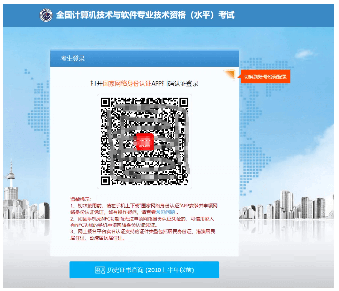 第三、点击“证书查询”进入到证书查询登录页面,扫码或账号密码登录