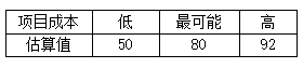 某项目成本估算区间如图所示(单位:万元),则在84万元内完成项目的可能性为( )。