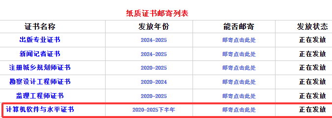 根据四川人社厅官网发布的《四川省直属考区证书领取(邮寄)通知》得知,四川省直属考区2025年下半年软考证书于12月24日开始发放,考生可通过快递邮寄和现场办理两种方式领证,具体如下: