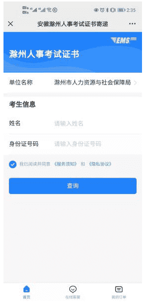领取地点:滁州市行政服务一楼大厅公共服务区E06号邮政速递窗口