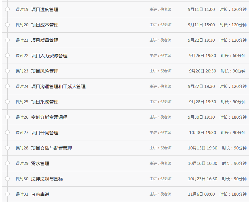 2016下半年中级系统集成项目管理工程师直播课程课程表