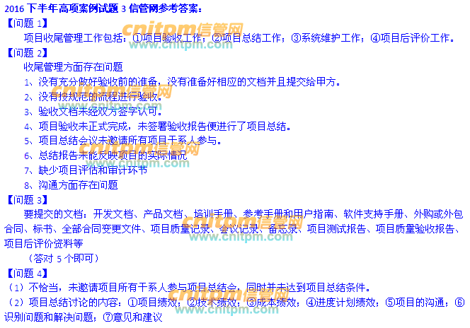 点击查看:2016年下半年信息系统项目管理师真题下午案例分析(全)