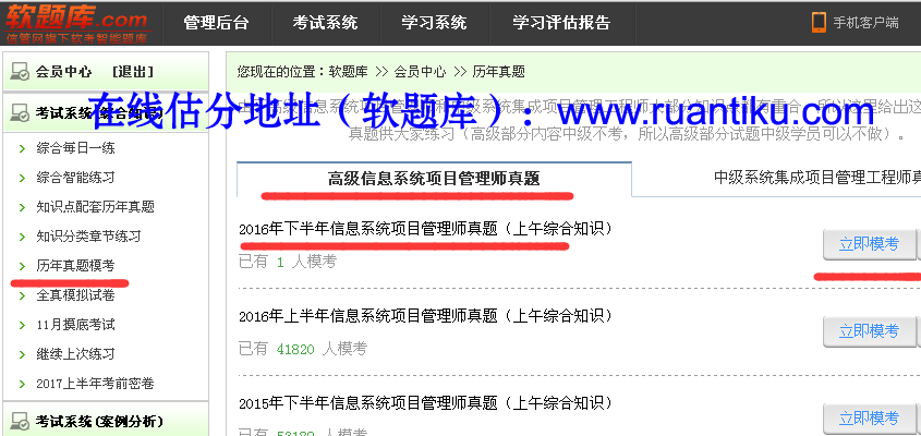 [高级估分]2016下半年信息系统项目管理师在线估分已开通!