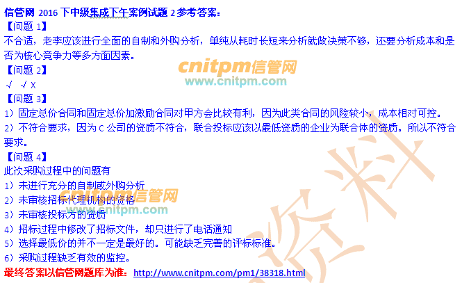 2016下半年中级系统集成项目管理工程师下午案例分析真题第2题