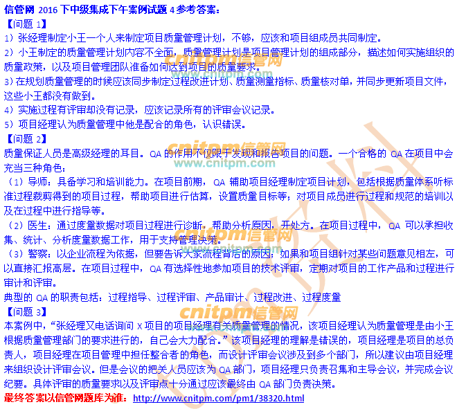 3.张经理没有及时对小王的工作进行跟踪了解。2个月后才发现小王执行质量计划存在问题,严重耽误了项目时间。
