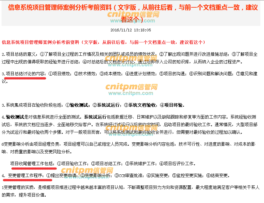 对于案例分析,作为难点,对考生顺利通过考试至关重要,而JRS直播在此次考试中,YZ多道题目,比如案例分析第一题考网络图和挣值方面计算题、整体管理、变更管理、收尾管理三个案例题方向,以及变更流程、收尾管理工作、总结会讨论内容等都精准押到。