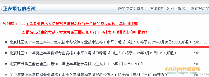 北京2017年上半年报名时间:2017年3月16日至3月30日