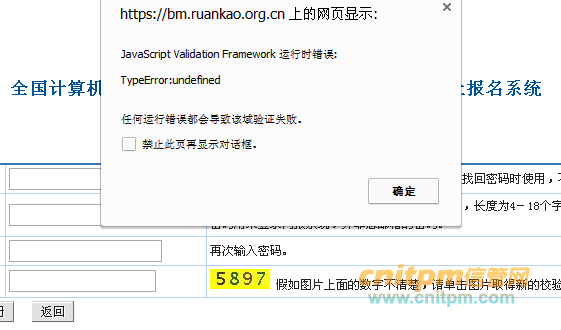 很多考生在软考报名官方网站-中国计算机技术职业资格考试网报名或注册的时候往往会出现如下的错误:“任何运行错误都会导致该域验证失败”