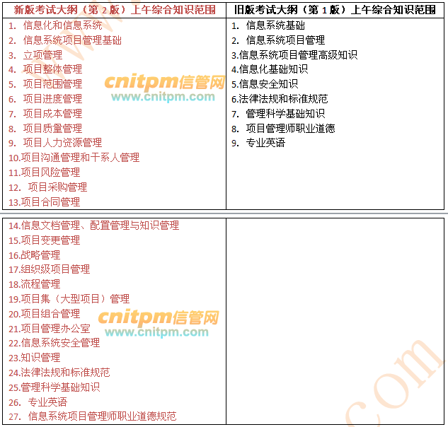 1、信息系统项目管理师上午综合知识新版考试大纲解读