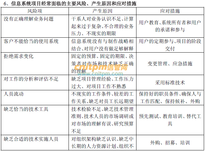 6、信息系统项目经常面临的主要风险、产生原因和应对措施