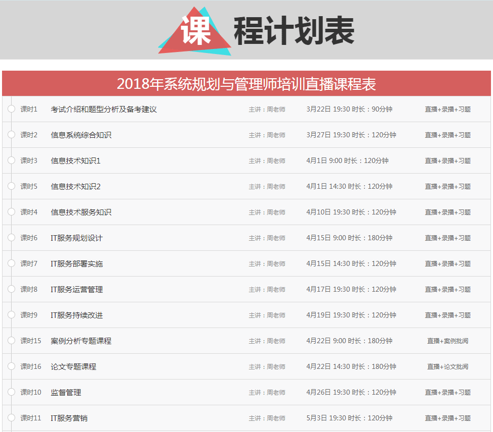 JRS直播2018年系统规划与管理师考前冲刺直播课程,信管名师考前2个月冲刺串讲直播,通关班、精品班、退款班多种班级供您选择,专业、专注、专心,只为你一次通关!