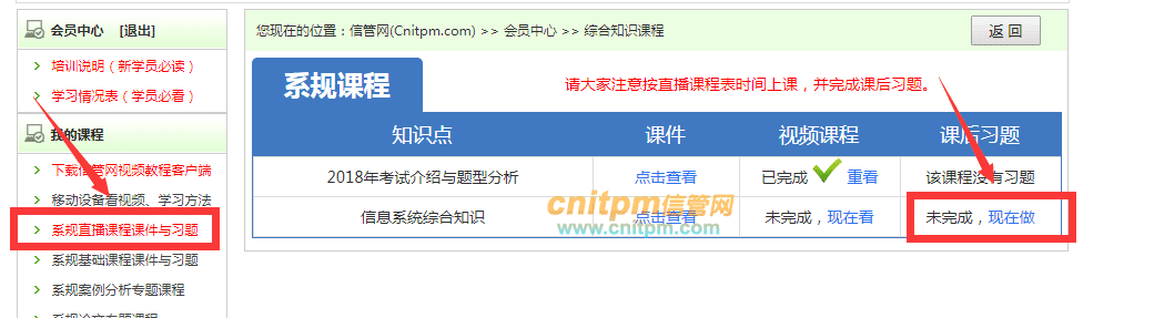 2018年上半年系统规划与管理师直播课程3月27日晚上直播课程的录播已上传视频客户端和手机端,各位系统规划与管理师培训学员可以登录视频客户端观看,同时课后习题已上传JRS直播会员后台,请登录答题。