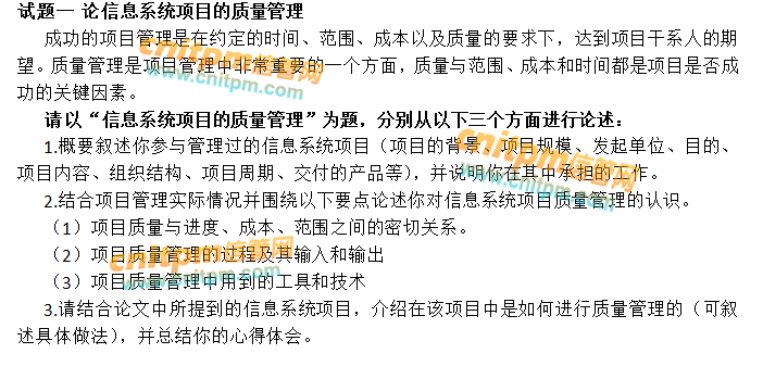 注:由于页面缓存,请打开后刷新页面。 试题一 论信息系统项目的质量管理: 试题二 论信息系统项目的人力资源管理:
