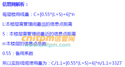 C=[0.55*(L+S)+6]*n 的意思就是最远距离的加最近距离的除以2,再加上5%的是线中间的长度,线两端各预留3米,就是一个信息点所需要的线长度