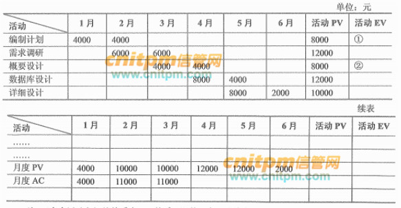 Perfet项目6个月的预算如下表所示。表中按照月份和活动给出了相应的PV值,当项目进行到3月底时,项目经理组织相关人员对项目进行了绩效考评,考评结果是完成计划进度的90%。