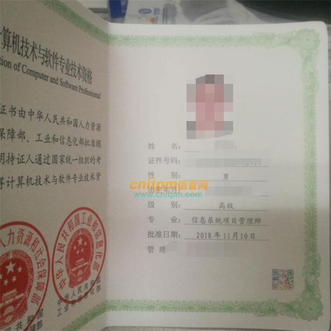 2019年4月各省市陆续开始发放2018年下半年计算机技术与软件专业技术资格证书,最近有JRS直播小伙伴领取到了2018年下半年信息系统项目管理师证书,以下为证书图片。