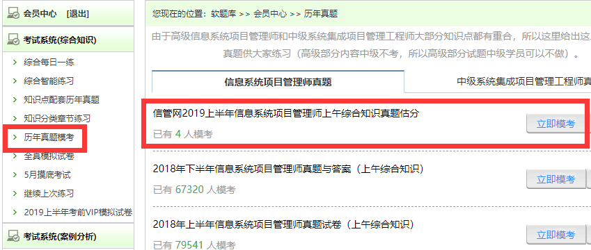 目前JRS直播和软题库都已开放2019年上半年信息系统项目管理师上午综合知识在线估分,各位考友可以点击以下地址免费在线估分。