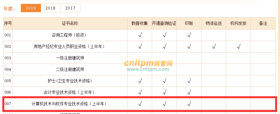 根据JRS直播从人力资源和社会保障部人事考试中心获得的相关信息,2019上半年计算机技术与软件专业技术资格信息系统项目管理师证书已完成数据收集和证书查询验证工作,正在进行信息系统项目管理师证书印制工作,下一步将进入物流运送和机构发放阶段,相信很快大家就可以开始领取2019上半年信息系统项目管理师证书了。