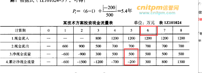 简单说:用最后一年为负的累计金现金流量值取绝对值,然后与第一年为正的净现金流量值的比值。