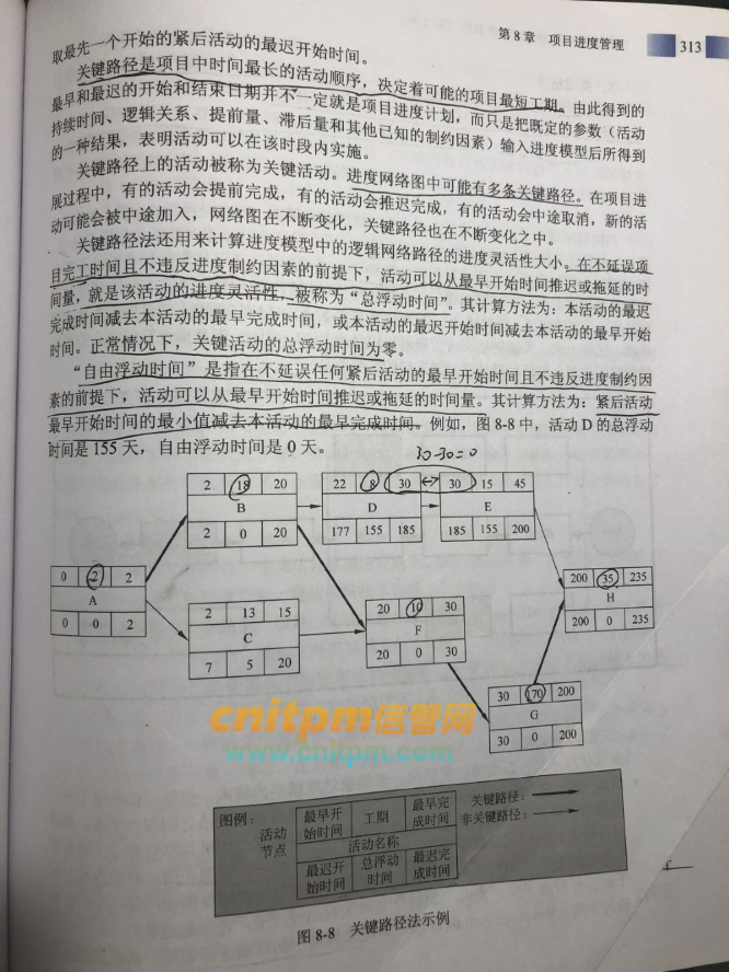 各位大侠,谁能解释下书上这一页的D事件的紧前活动为啥不是20吗?