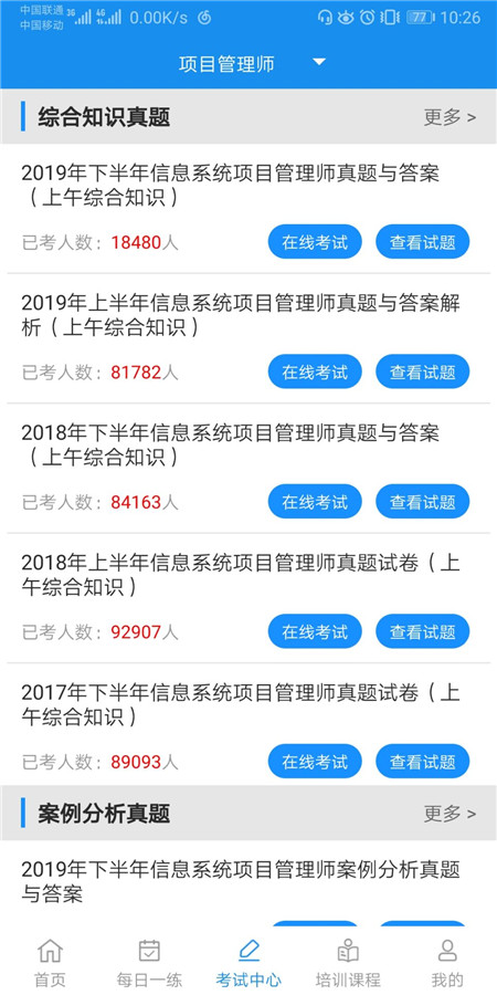 考试中心提供信息系统项目管理师、系统集成项目管理工程师、系统规划与管理师、信息安全工程师等四个考试综合知识案例分析的历年真题和模拟题。