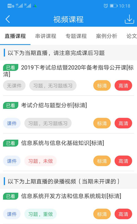 打开JRS直播APP(下载地址:https://www.fzyzx.cn/app/),进入“我的”,点击“视频课程”,即可看到相关课程,可以选择标清和高清模式观看。